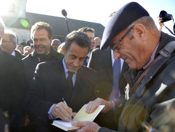 El presidente francés, Nicolas Sarkozy, firma un autógrafo. / ERIC FEFERBERG (AFP)