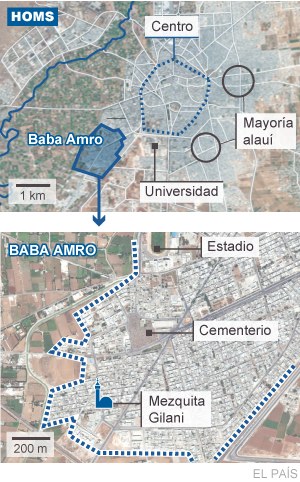 "Baba Amro es un Estado dentro del Estado". B., el soldado que habla, es un hombre guapo, de rostro fino y expresivo y ojos brillantes, iluminados tanto por su fe como por el ayuno que respeta desde que se unió al Ejército Libre de Siria (ELS), en diciembre. No es un desertor, como la mayoría de sus camaradas, sino un civil de Alepo que, escandalizado por los crímenes del régimen, decidió empuñar las armas. Su frase, desde luego, es anterior al 4 de febrero, el día en el que el Ejército sirio (Jaysh-e-Assadi, lo llaman sus adversarios, el Ejército de los Asad) emprendió un bombardeo intensivo de la zona, que causó varios centenares de muertos. Hasta entonces, se consideraba que Baba Amro era un "barrio liberado".