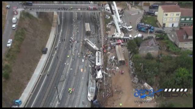 El siniestro, el primero con víctimas mortales en una línea de alta velocidad en España y el más grave en los últimos 40 años, se produjo antes de las nueve de la noche, cuando el tren Alvia, que cada tarde-noche entra en la capital de Galicia procedente de Madrid y con destino a Ferrol, descarriló a cuatro kilómetros de la parada. Fue de tal intensidad que uno de los ocho imponentes vagones voló a 15 metros. El resto volcó y uno acabó convertido en un amasijo de hierros.