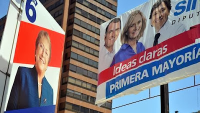 Carteles electorales de Bachelet y Matthei en Santiago de Chile