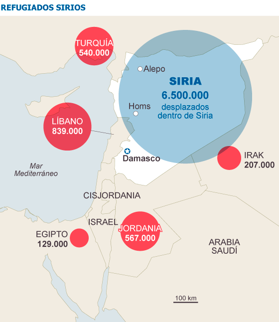 Desde Ginebra, la coordinadora de ayuda de emergencia de la ONU, Valerie Amos, y el alto comisionado para los refugiados, Antonio Guterres, explicaron que casi el 35% de este fondo se dedicará a 9,3 millones de beneficiarios potenciales aún residentes en Siria, que necesitan la ayuda “de manera crítica”. El resto se destinará a Líbano, Irak, Jordania, Turquía y Egipto, países de acogida de la diáspora, donde los sirios pasan “extrema necesidad”. Hay más de cien entidades, entre agencias oficiales de Naciones Unidas, ONG locales e internacionales, esperando a que llegue el dinero para asistir a la población.