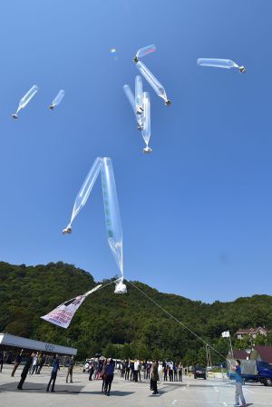 Activistas del Sur lanzan globos con mensajes hacia el Norte provocando un fuego cruzado